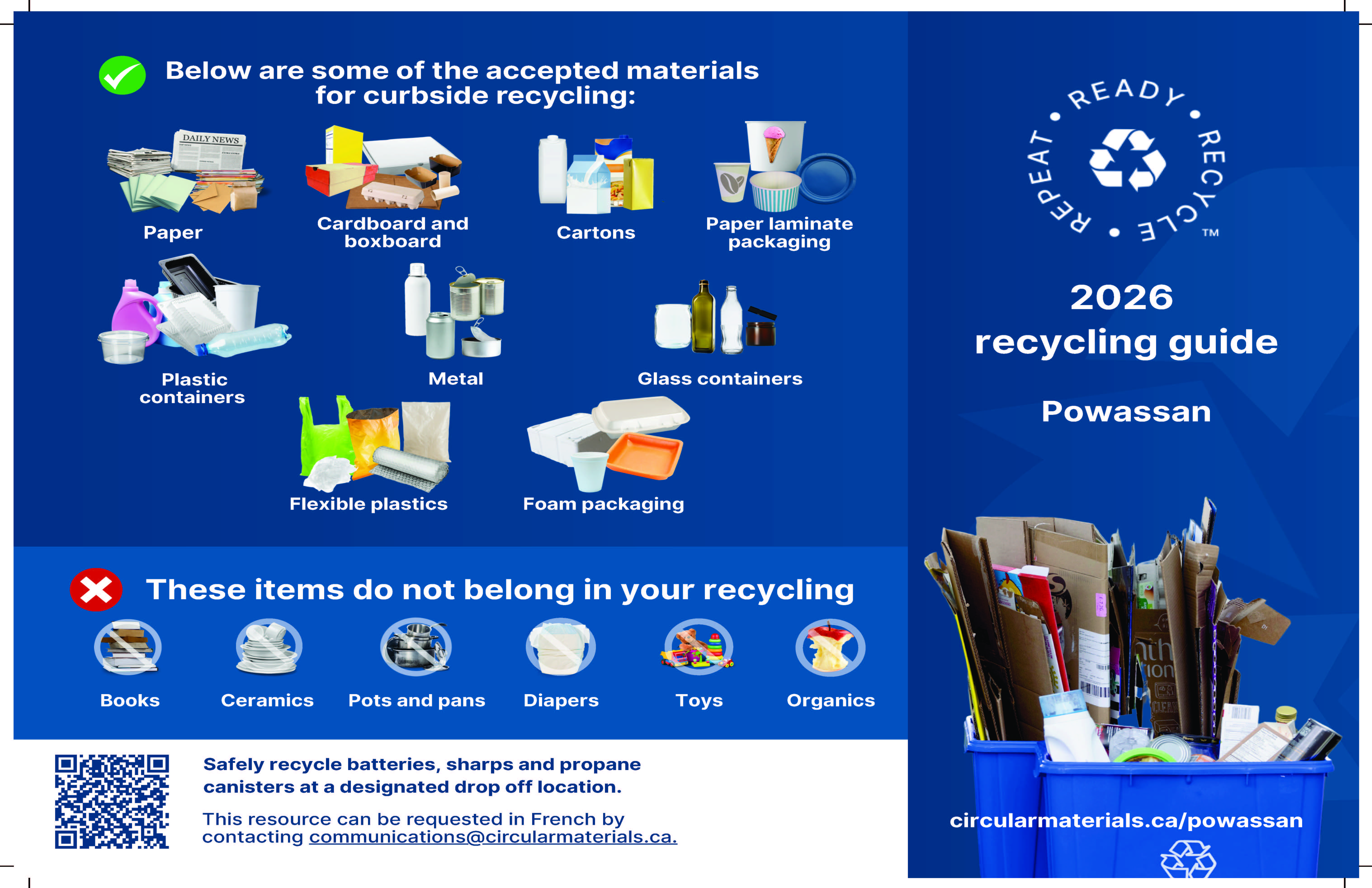 For concerns or other recycling-related questions, please contact Circular Materials: | 1-877-667-2626.
